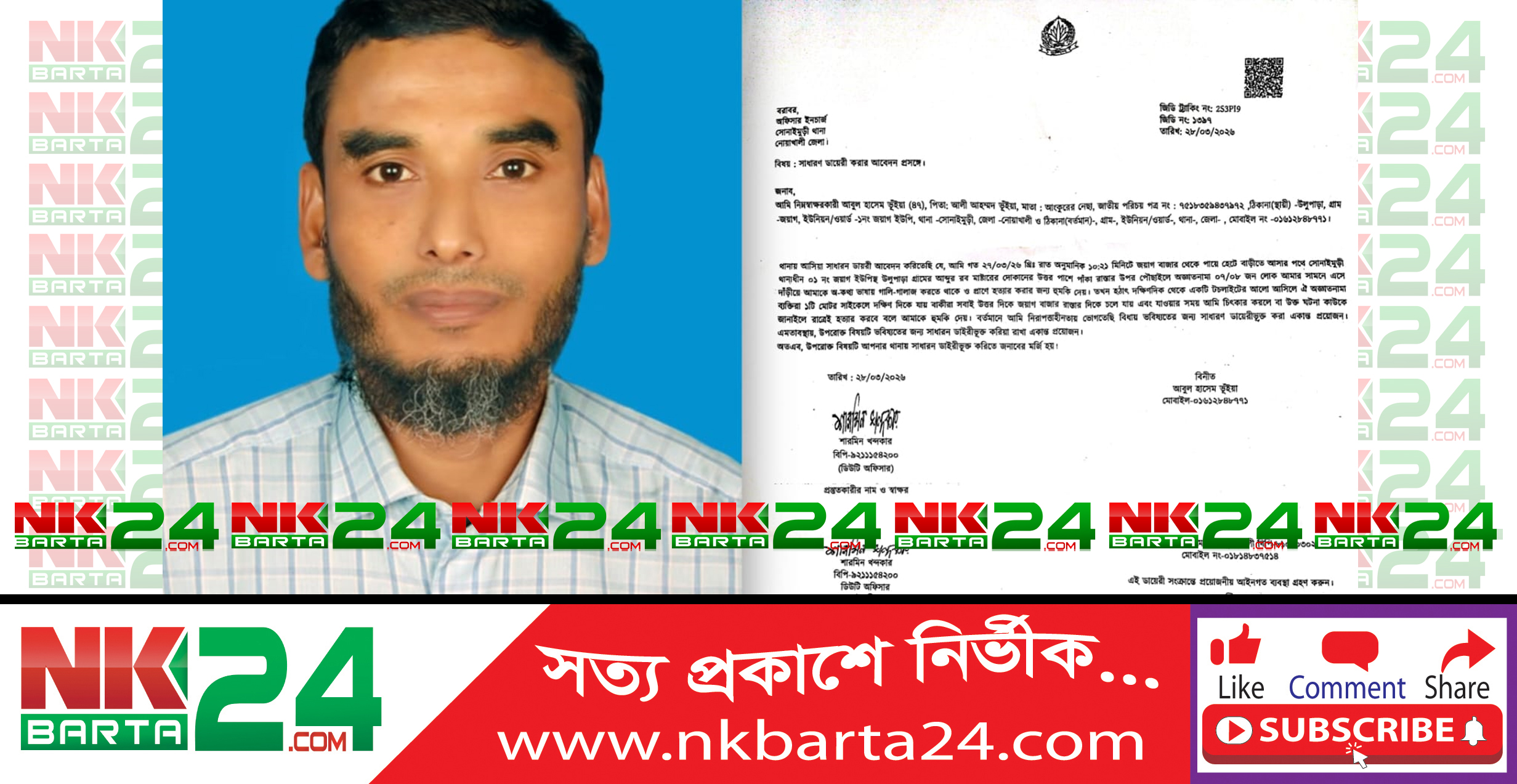 গোসল করতে যাওয়ার পথে বজ্রপাতে কিশোরের মৃত্যু শয়ন কক্ষে মদের আস্তানা, ৩৯ বোতল বিদেশি মদসহ গ্রেপ্তার-৩ সোনাইমুড়ীতে যুবদল নেতাকে হত্যার হুমকি, থানায় জিডি ১৫০ টাকা বেশি ভাড়া নেয়ায় জরিমানা ৫০ হাজার স্বামী পরিত্যক্ত নারী ও মেয়েকে কুপ্রস্তাব, রাজি না হওয়ায় বাড়িতে হামলা-ভাংচুর, প্রতিবাদে ভুক্তভোগী নারীর সংবাদ সম্মেলন সুবর্ণচরে আওয়ামী সন্ত্রাসী মাঈন উদ্দিন ডাকাতের বিচারের দাবিতে মানববন্ধন এ কেমন শত্রুতা কলা গাছের সঙ্গে? অ্যাডভোকেটশিপ পরীক্ষায় উত্তীর্ণ সুবর্ণচরের রিফাত সড়কে নিভে গেল মুফতি মমিনের পরিবার, একই কবরস্থানে চারজনের দাফন সৌদিতে স্ট্রোক করে বাংলাদেশির মৃত্যু